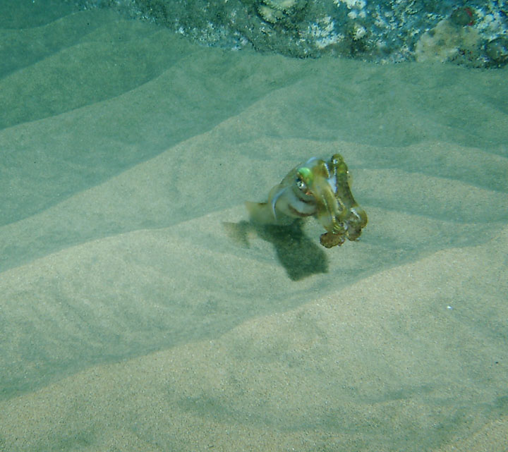 | Cuttlefish This is the only cuttlefish I've ever seen. It was on a night dive at Ulua Beach. He was hanging around in about 10 fsw. He let us pet him and swam up to our masks. |